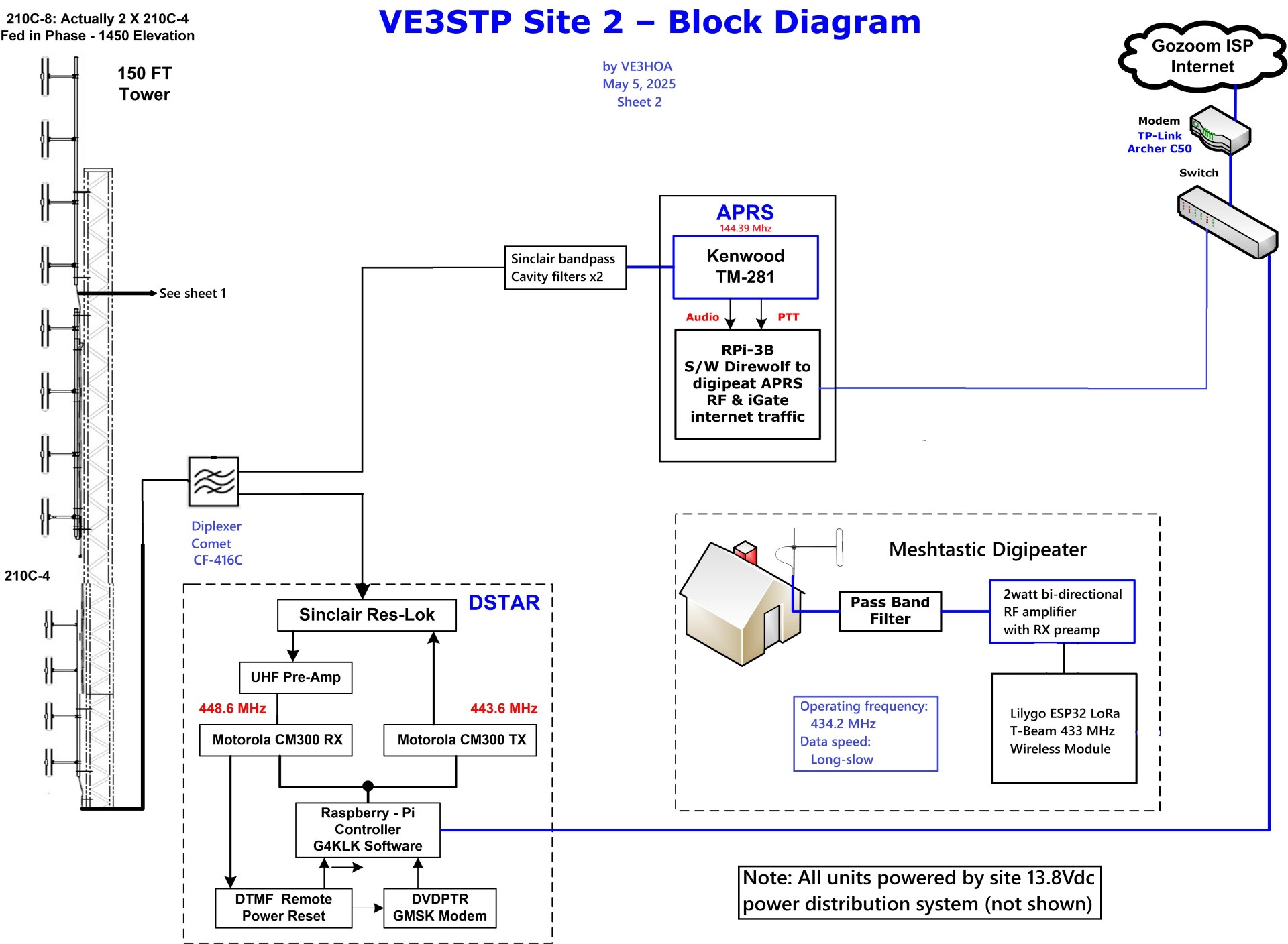 VE3STP-10 VHF is a APRS digipeater transceiver operating of the 144.39 MHz North American APRS frequency. Received APRS packets are sent to the North American iGate for internet use.