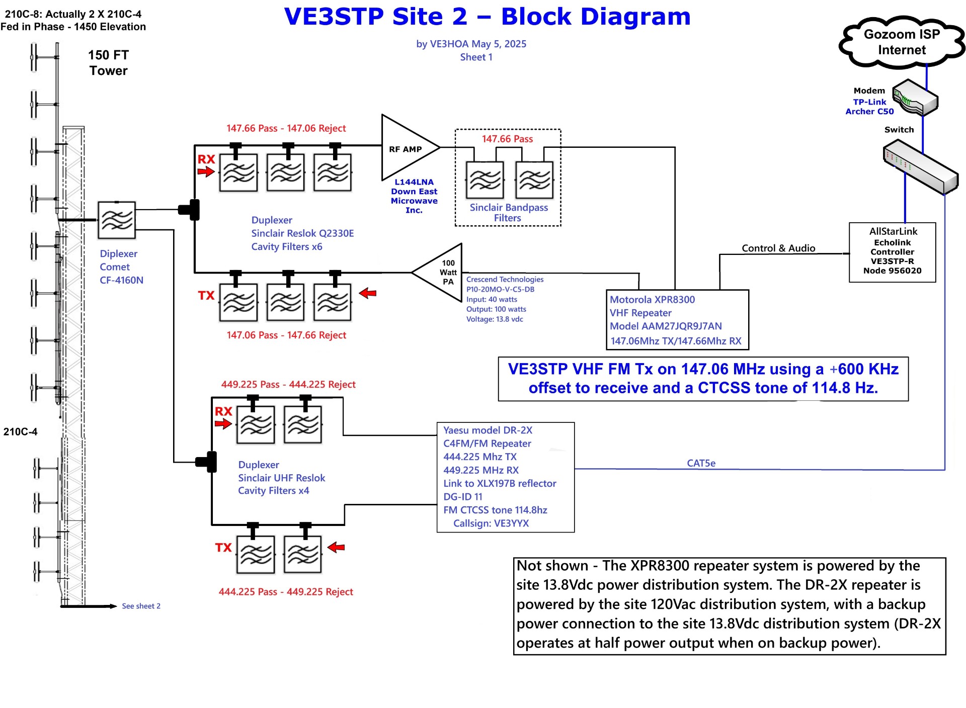 VE3STP VHF FM repeater transmits on 147.06 MHz using a +600 KHz offset to receive and a CTCSS tone of 114.8 Hz. The repeater is located at CRRA Site 2.